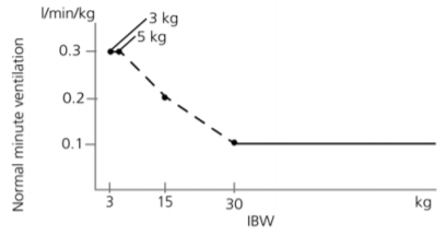 Figura 1: Ventilazione minuto normale in funzione del peso corporeo ideale (IBW). (5)
