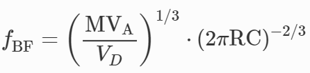 Eq 1: frequenza a potenza respiratoria minima. Dove RC=costante di tempo espiratoria, MVa= ventilazione alveolare minuto e Vd= spazio morto.