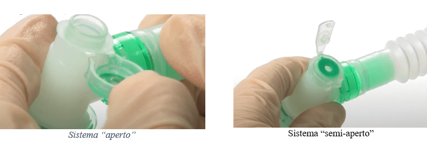 Quando è presente un catetere-mount dotato di tappo in gomma perforato, per aspirazione “aperta” si intende quella effettuata aprendo la porta “grande” del sistema, oppure deconnettendo il mount dal raccordo a 15 mm del tubo tracheale o tubo tracheostomico. La porta “piccola”, infatti, nasce per l’esecuzione della broncoscopia. Questo va considerato nell’interpretazione della lettura delle linee guida americane, perché l’utilizzo del catetere mount non è comune oltreoceano, anche se non sono reperibili dati certi circa il suo utilizzo.