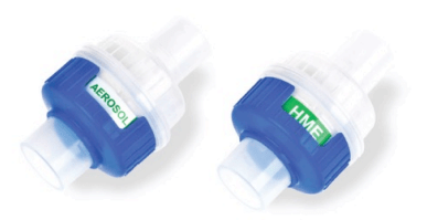 Gli HME devono essere rimossi durante la somministrazione dell’aerosol, perché da un lato catturano le particelle di farmaco, riducendo notevolmente l’efficienza della somministrazione (se posizionati tra nebulizzatore e paziente) [1,2], dall’altro potrebbero ostruirsi aumentando in modo esponenziale le resistenze al flusso delle vie aeree. Ci sono HME noti per essere permeabili all’aerosol (Fig 1), che non vengono rimossi dal circuito ma riducono la dose inalata fino al 40%; di conseguenza la dose di farmaco dovrà essere aggiustata [2]. Invece, alcuni HME sono stati riprogettati per reindirizzare l’aerosol dal circuito del ventilatore alla parte distale di un TET durante la terapia inalatoria (Fig 2)[2].