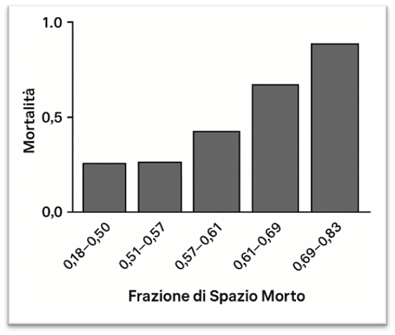 Lo studio di Nuckton e collaboratori, in particolare, ha consolidato questo concetto, identificando l’aumento dello spazio morto come un predittore indipendente di mortalità nella fase precoce della malattia, ben visibile nella Figura 2 [2].