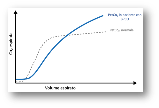 - Una Fase II prolungata, indicativa di un ritardo nell’espirazione del gas ricco di CO₂;